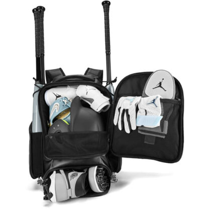底部には換気口のシューズポケットが付いている多機能バットパック。