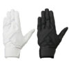 スイング時の力の流れ・強さを分析し、バットへ力を伝えるのに重要な“小指・薬指・中指”と“当て革部”に、表裏両面に高いグリップ力を誇る『特殊合成皮革』を採用。指部には、手袋の内側から当て縫製することで、グリップとの接地面のみならず、手袋内部へも高いグリップ力/密着性を与えます。