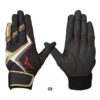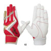 スイング時の力の流れ・強さを分析し、バットへ力を伝えるのに重要な“小指・薬指・中指”と“当て革部”に、表裏両面に高いグリップ力を誇る『特殊合成皮革』を採用。指部には、手袋の内側から当て縫製することで、グリップとの接地面のみならず、手袋内部へも高いグリップ力/密着性を与えます。