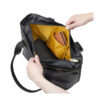 ファスナーフルクローズで中身が落ちない設計、再生ポリエステル使用